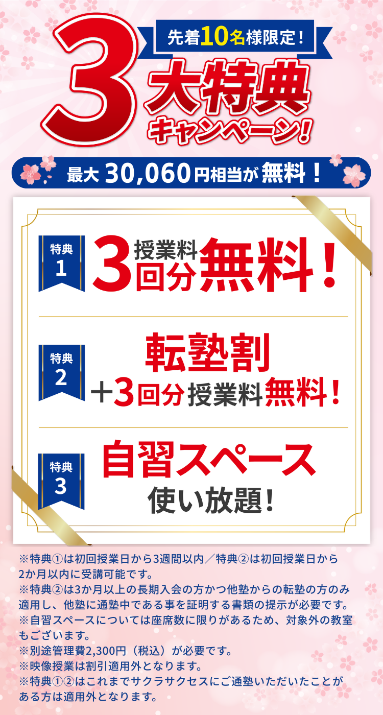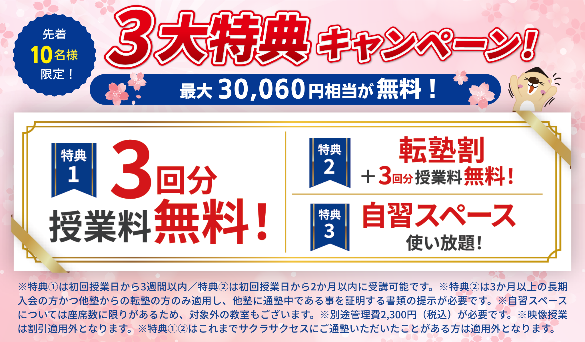 お得なキャンペーンが適用されるため、たくさん受講されたい方、まずは塾を試してみたい方に最適です。