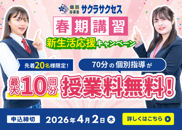 サクラサクセスに通って良かったことは、一人ひとりに合わせた個別指導が受けられることです。特に、高校受験対策では、過去問の特徴を教えてもらい、弱点を克服するための授業が受けられました。理解できないところも丁寧に指導してもらえるので効率よく学習できました。